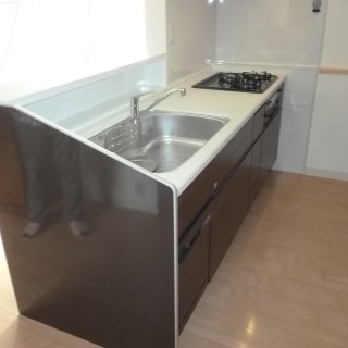 スリムラインの取手と引出しラインが統一されているので見た目がきれいなデザインです。天板はクールなイメージの銀河エンボス加工を採用なので、表面に傷がつきにくく汚れが付着しにくいのが特徴です。また、以前は洗剤置き場がなかったのですが、ステンレス製のまな板立て&洗剤ラックがあることにより、毎日つかう主婦にとっては重要なポイントだと思います。