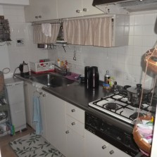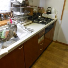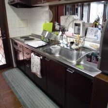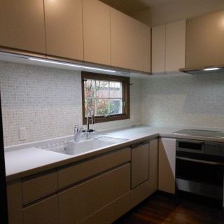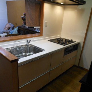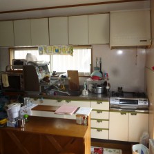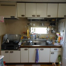 前項の問題点の改善の為に、O様も今回思い切って使わない食器や調理器具などを処分されました。まず吊戸の全面撤去し、置き型浄水器の撤去・食器洗浄機を使いやすい場所に置くための棚移設などできるだけ使いやすくなるように一緒考えながら進めていきました。