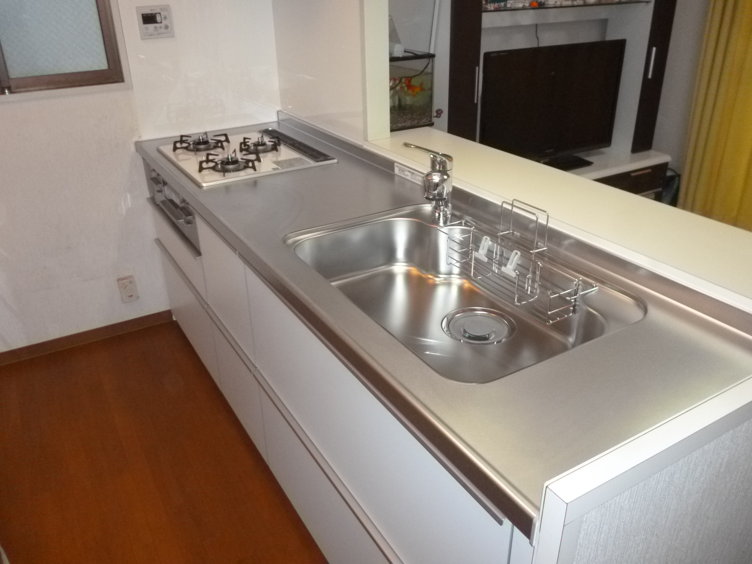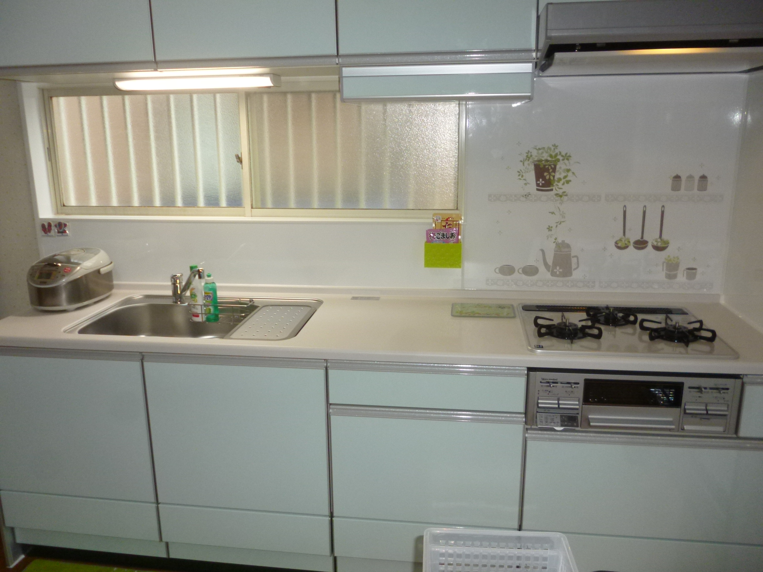 今回のもう一つのポイントは、キッチンの色と床のシートの配色を今までと逆にしたのでスッキリ感が増しました。