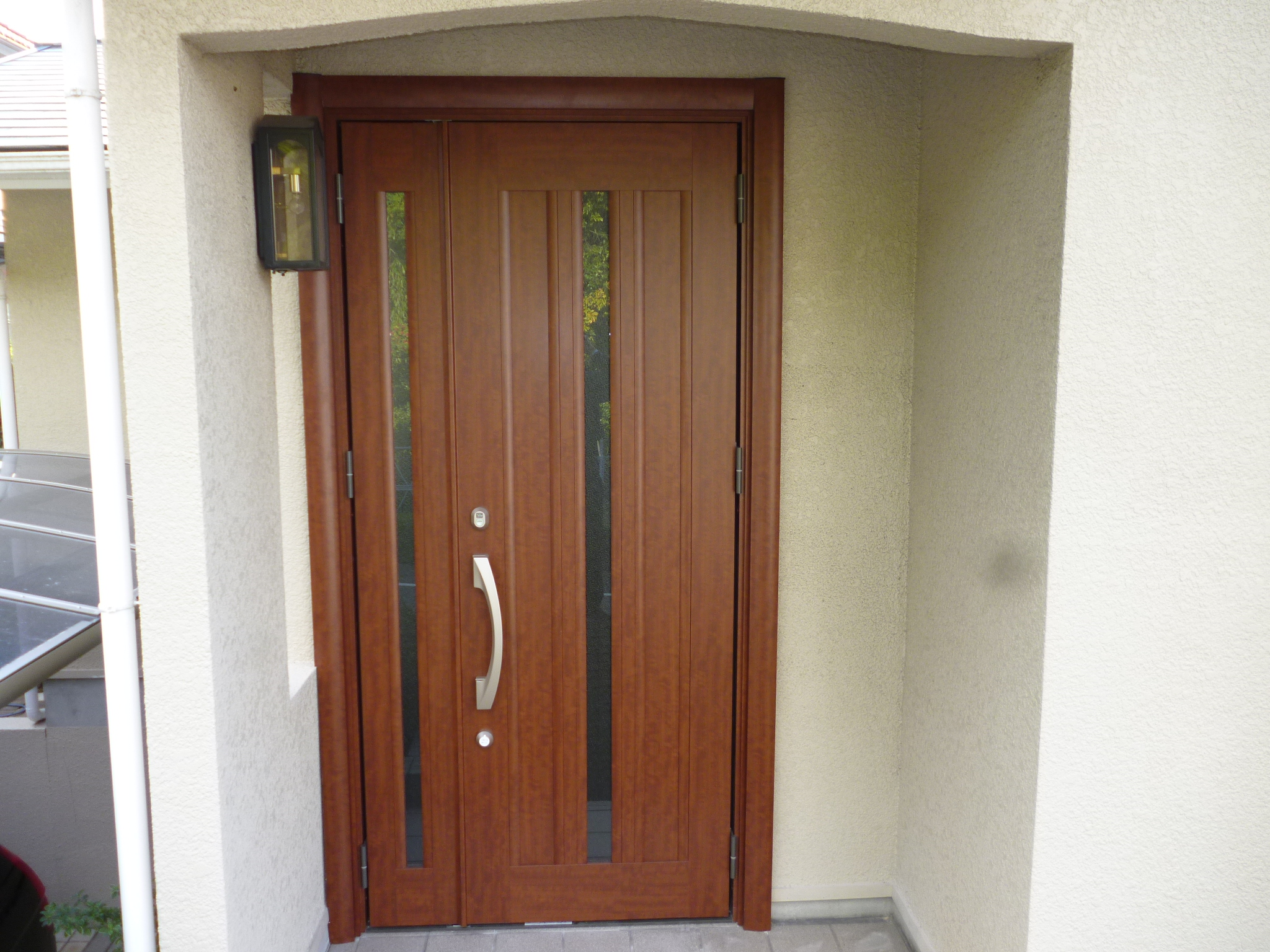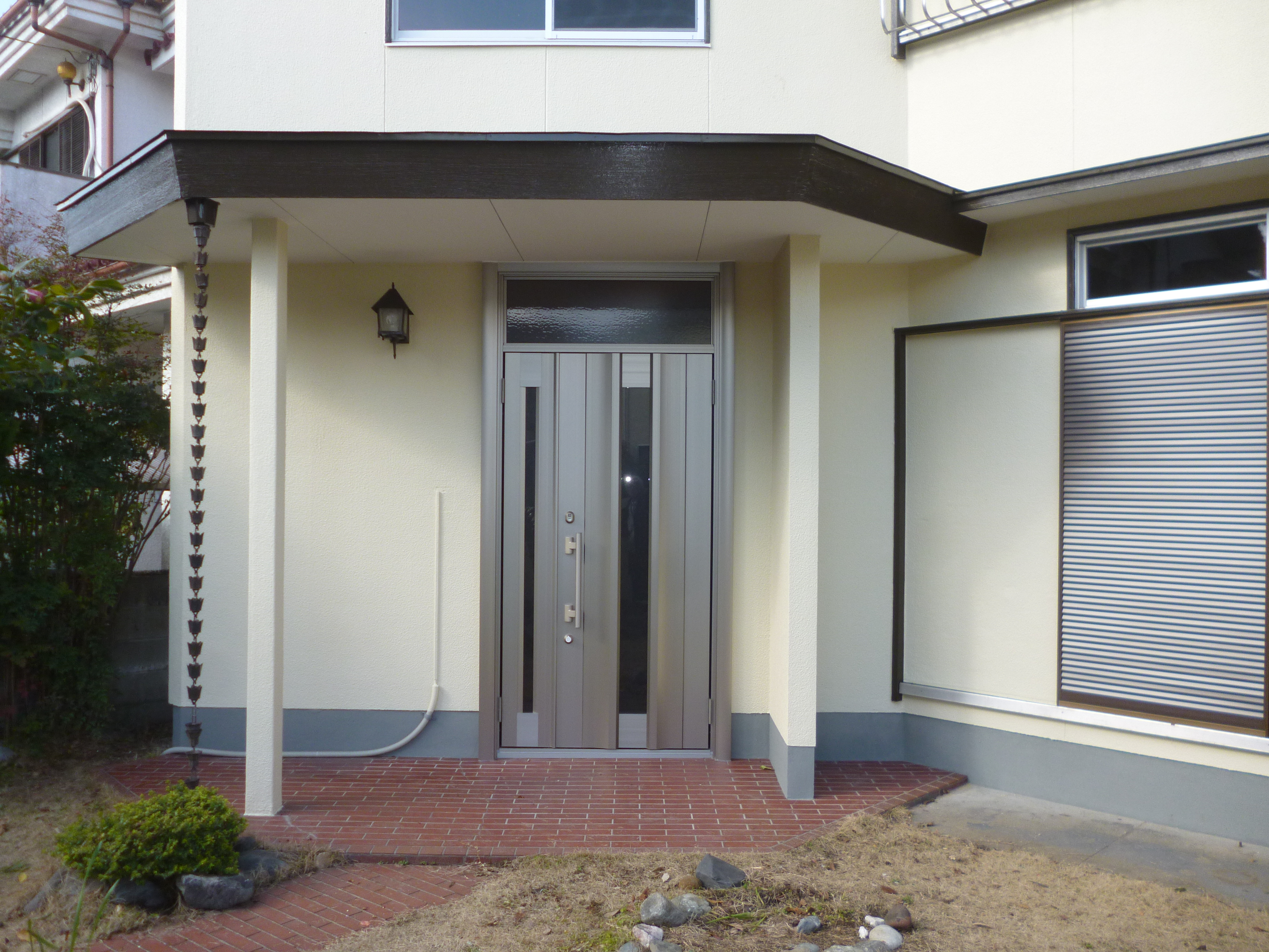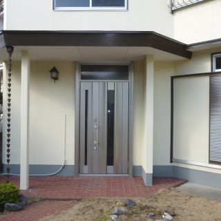 屋根・壁塗装と外部改修工事にあたり、玄関ドアも新品に!