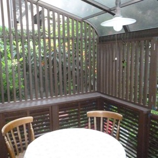 ワンちゃんとニャンコさんたちの為に、室内から自由に出入りできるようサンルームに格子を取り付けたいとご相談でした。