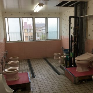 福岡市 F幼稚園 園児用集合トイレパーテーション取替工事