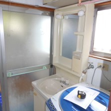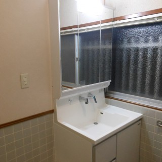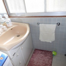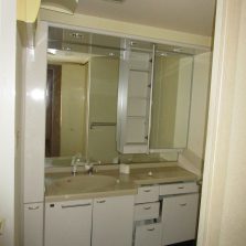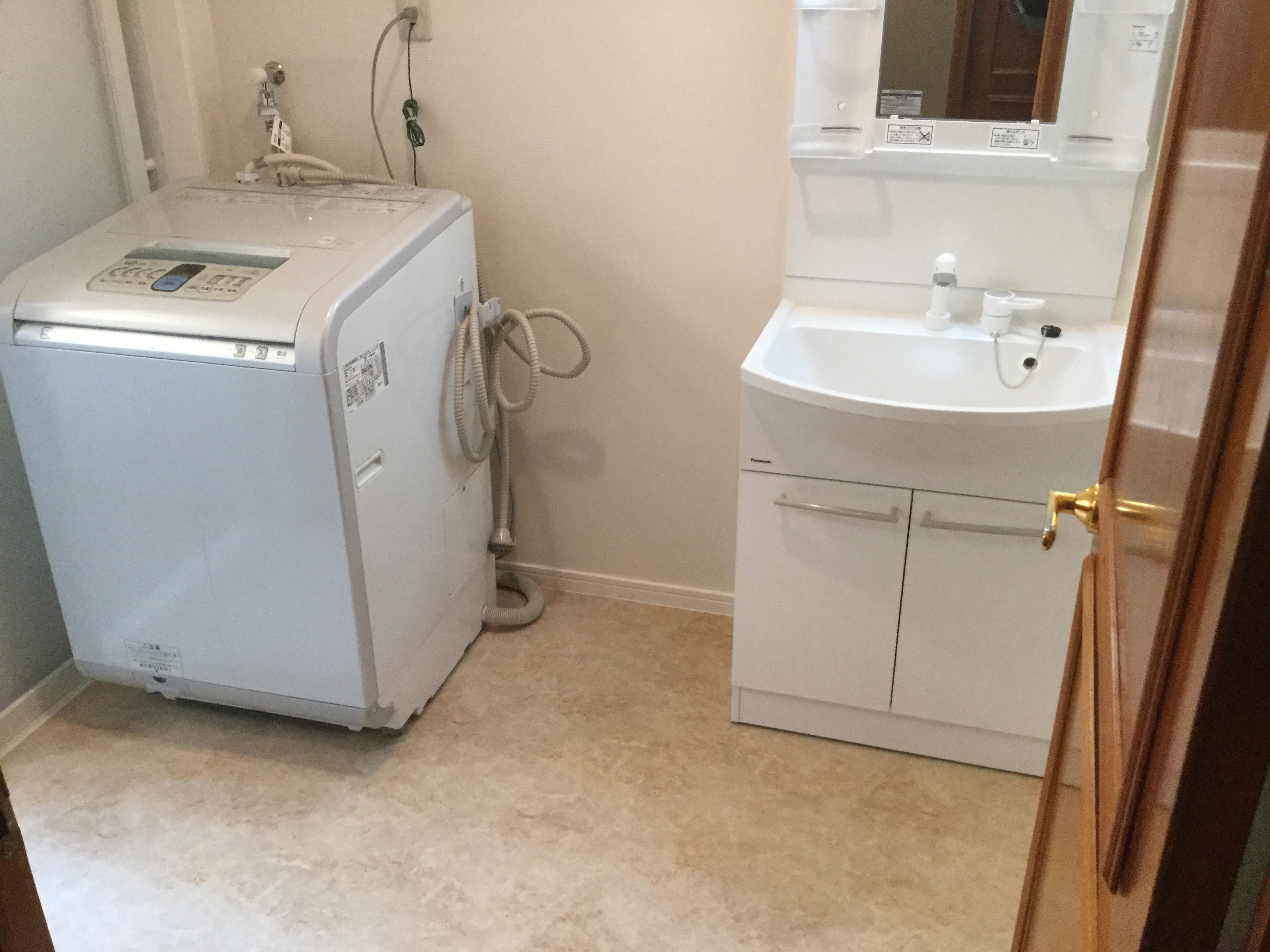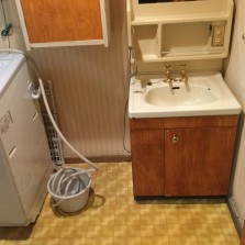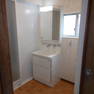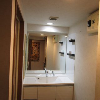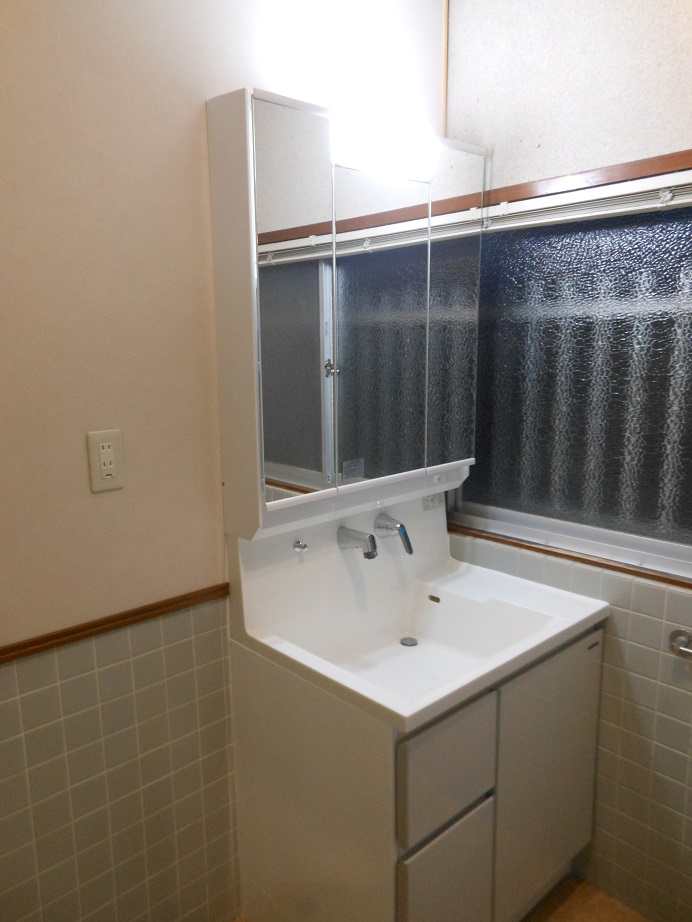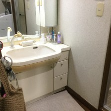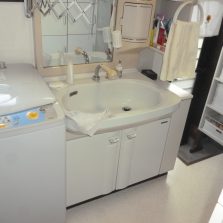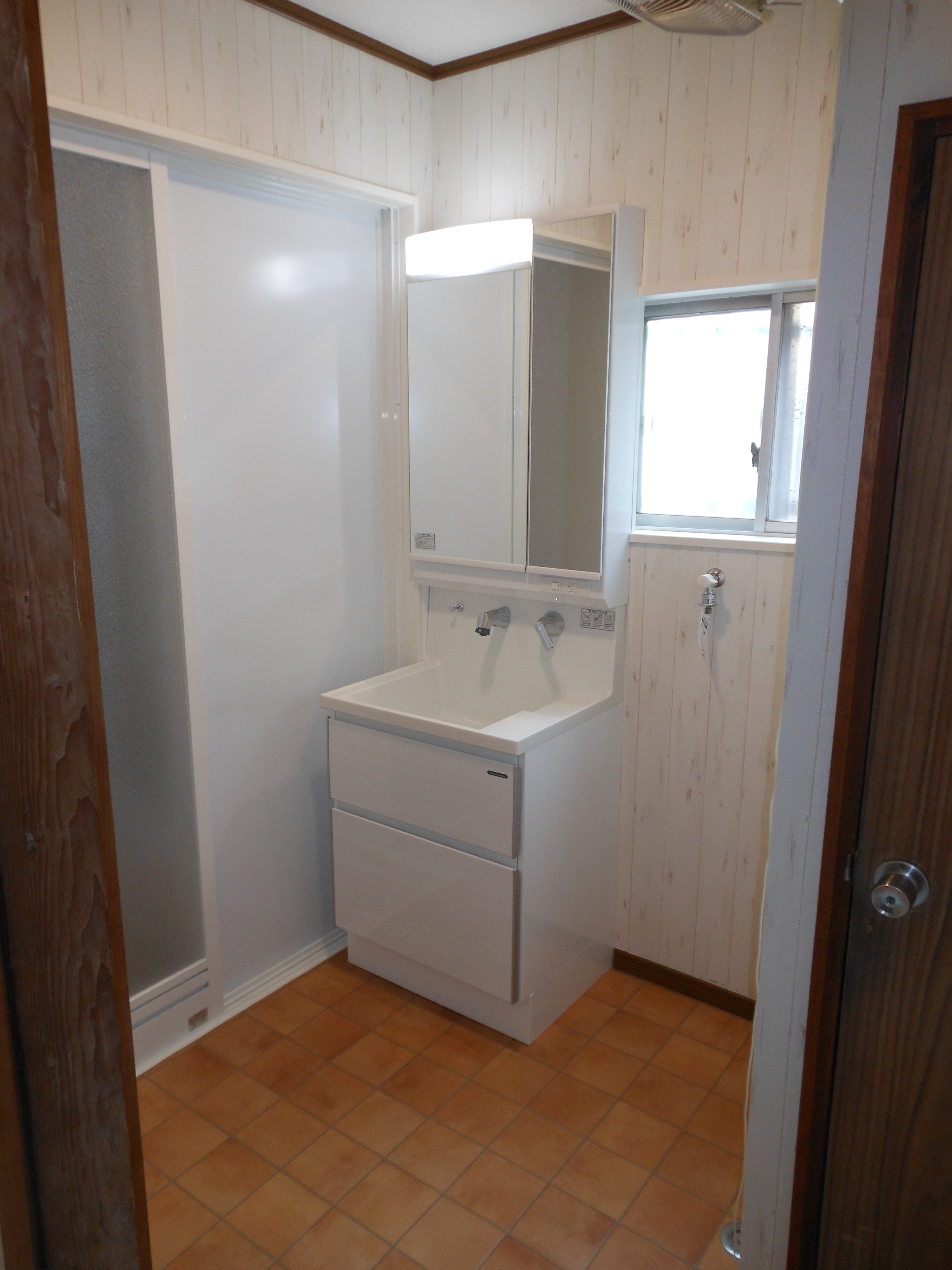洗面はサイドに水撥ねし、壁面に水が浸透したりするので、水がかかっても大丈夫なように