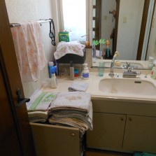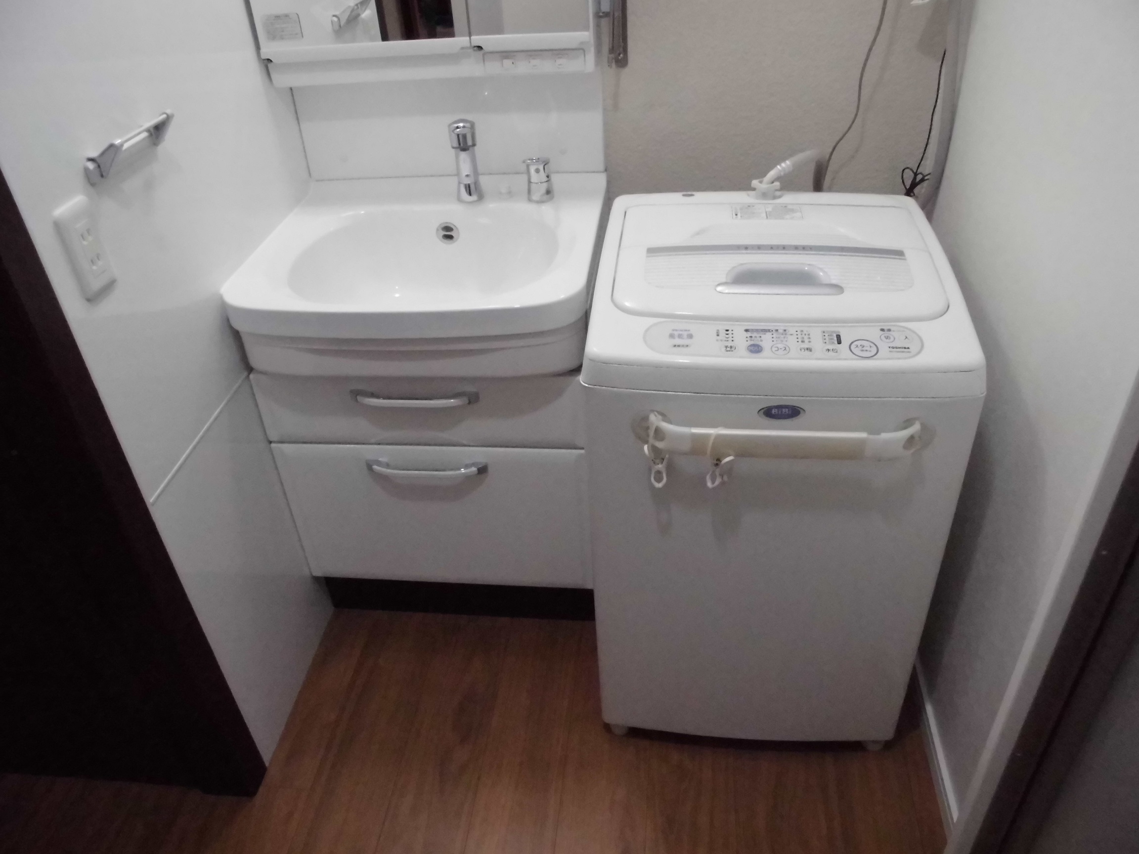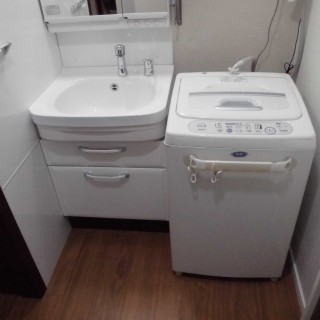 洗面台を背面に移設し、洗濯機と並べたので、洗濯物の下洗いなどがスムーズにできるようになりました。洗濯機はキャスター付きの架台の上に設置してあるので、スイスイと動かしてお掃除ができるようにご主人様のアイデアが勉強になりました。